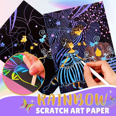 Experience creative magic with Rainbow Scratch Art Paper. This paper features rainbow-hued colors that are revealed when lightly scratched with a stylus. Unleash your imagination and discover beautiful designs and illustrations. Enjoy hours of artistic fun for all ages with this unique art paper.